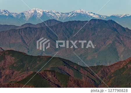 丹沢・檜洞丸から見る晩秋の三ツ峠と白峰三山
