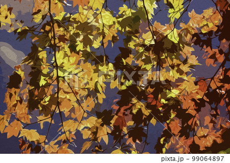 イラスト風 黒瀧山不動寺 紅葉 群馬県南牧村