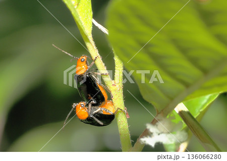 交尾中のクロウリハムシ