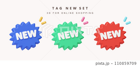 3d Set of Newest product. price shopping tags. for shopping online concept. icon isolated on white background. 3d rendering illustration. Clipping path.