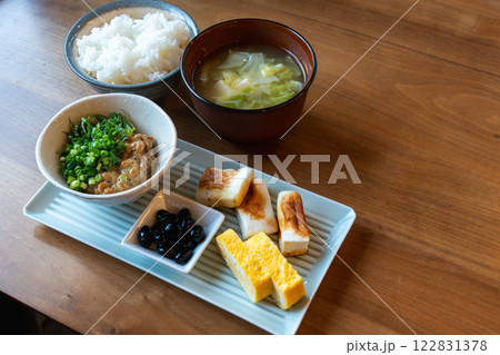 和食の朝食 ご飯と味噌汁 納豆と卵焼き
