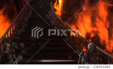 Hell gates. Road to hell fire. Devil portal. Sinner. Religious concept. 3d rendering.
