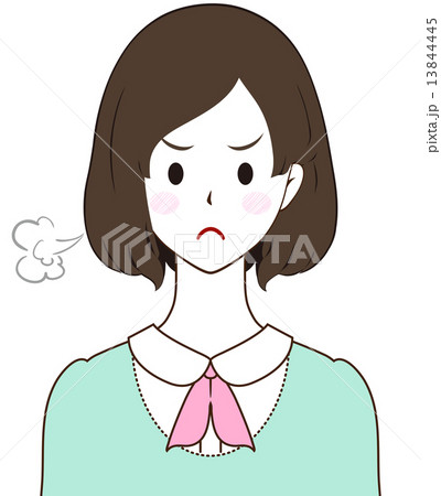 鼻息を荒くして怒る可愛い小さな女の子の絵文字イラスト アイコン 顔 表情 白背景 ベクター