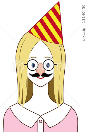 笑顔の女性 三角帽子 鼻めがね