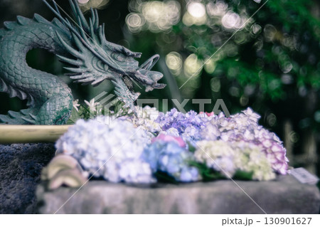 花手水と龍と紫陽花
