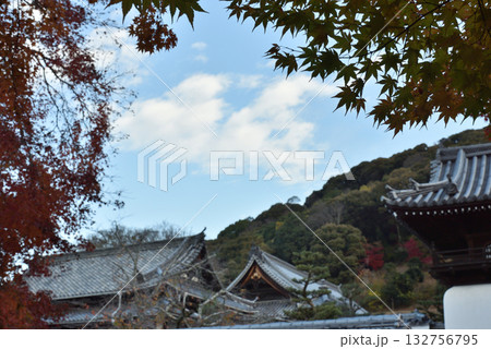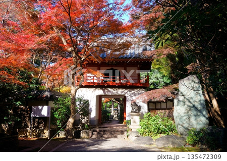 佛德山興聖寺 山門と秋のモミジ(京都府宇治市)