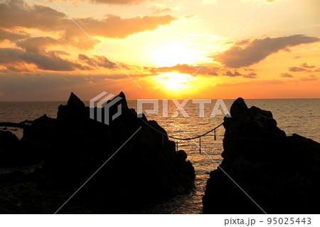 種子島の雄龍・雌龍の岩と、沈む夕日