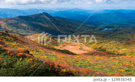秋の栗駒山登山(栗駒山~秣岳 : 須川湖方面の眺め)