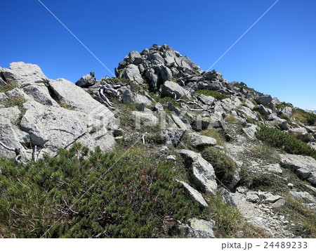 北アルプス 水晶岳山頂への道 立山連峰、剣岳、龍王岳、浄土山、薬師岳遠景