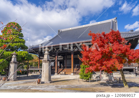 秋の京都 妙顯寺(妙顕寺) 紅葉に包まれた大本堂