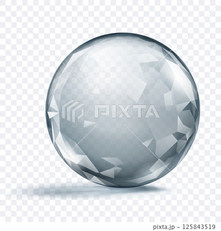 Gray crystal sphere with faceted surface.