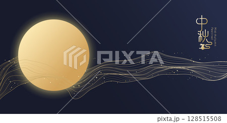 Mid-autumn festival, gold full moon, wavy lines