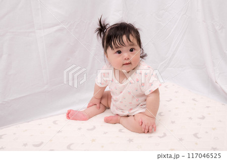 【お座りするツインテールの赤ちゃん】