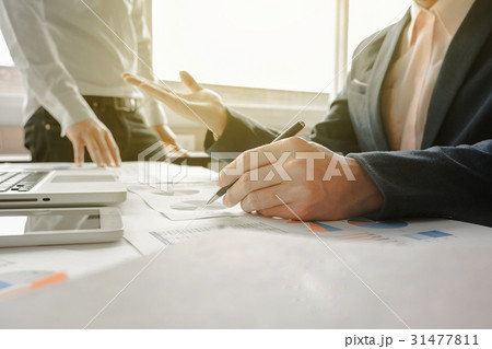 Business team two colleagues discussing new plan