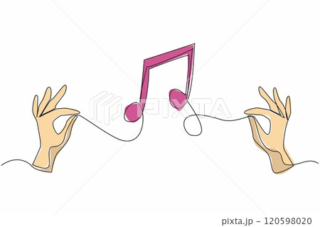 Single continuous line drawing two hands holding the string and the middle forming a tone symbol. The power of music to connect people. World Music Therapy Day. One line design vector illustration