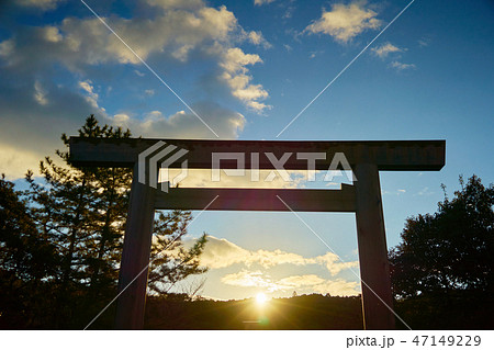 伊勢神宮内宮_宇治橋の鳥居日の出_No5