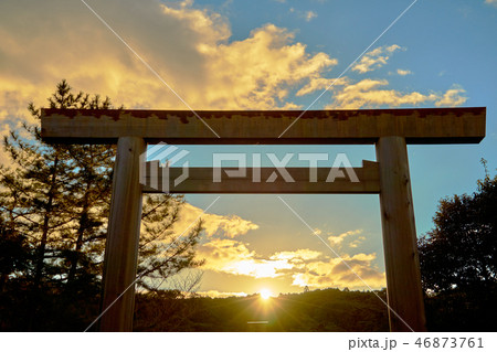 伊勢神宮内宮_宇治橋の鳥居日の出_No1