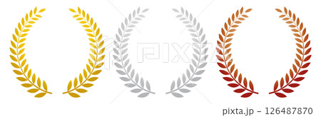 月桂冠 葉冠 シンプルなエムブレムの素材3種類セット ゴールド シルバー ブロンズ