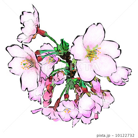 桜の花 花びら 濃いピンク 水彩風イラスト素材