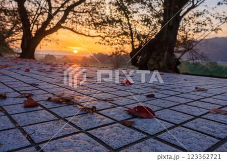 京都府八幡市背割り堤の桜の紅葉を撮影