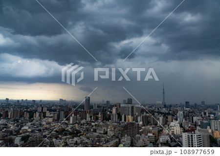 《東京都》東京タワーのある街並み・初夏の東京都市風景