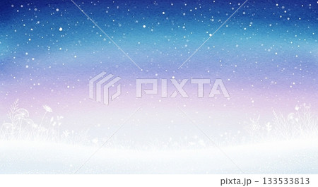 白雪の地面とパステルカラーのグラデーションが美しい冬の背景