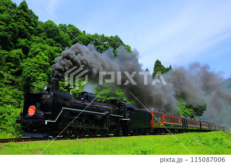 新緑の磐越西線を走るSLばんえつ物語 福島県喜多方市