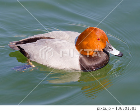 水面を泳ぐヒドリガモの雄のクローズアップ(冬の野鳥)