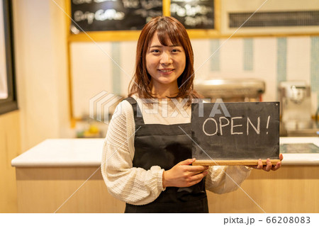 脱サラしてカフェを開業する若い女性 【笑顔】