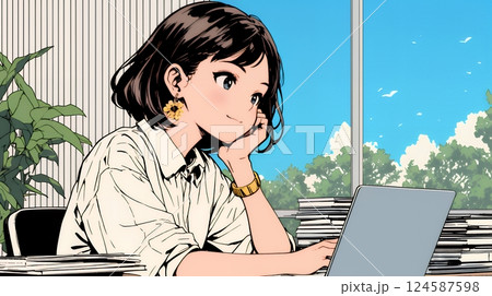ワーケーション:休暇を楽しみながら仕事をしている女性