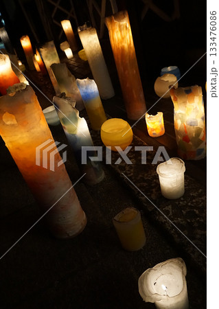 Colorful candles 石畳の歩道を照らすカラフルな手作りキャンドルの灯かり(冬の祭典)