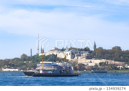 ボスポラス海峡から見るトプカプ宮殿博物館とフェリー
