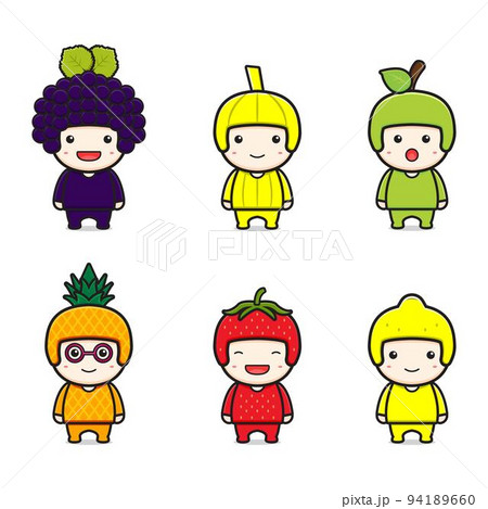 Set of cute fruit mascot cartoon icon illustration