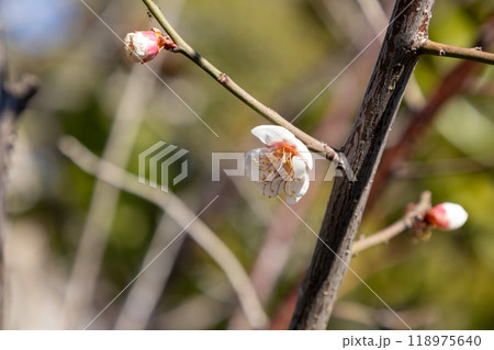 早春に咲く可憐な白い梅花