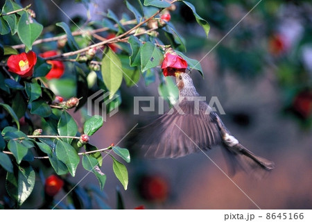 ホバリングしながら吸蜜するヒヨドリ