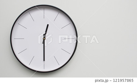 Minimalist Black and White Wall Clock on White background - Perfect for Time Management and Scheduling Concepts - 18.30/06.30