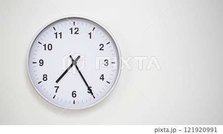 Classic Black-Edged Clock on White Background at 19.25/07.25 - Perfect for Time Management and Text Space