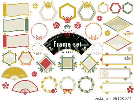 2024年辰年のシンプルおしゃれなお正月の水引と縁起物アイコンデザインパターンフレーム年賀状