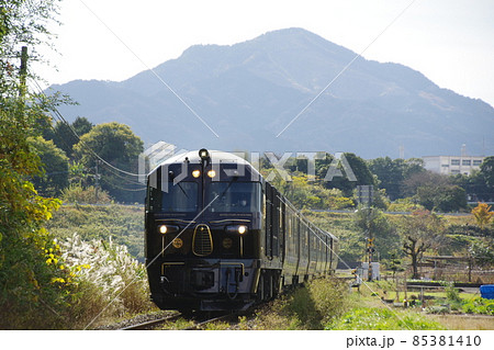 久大線の山中を行く、豪華寝台列車 ななつ星in九州