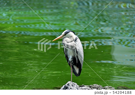 天王寺動物園のアシカプールにやって来た野生のアオサギ