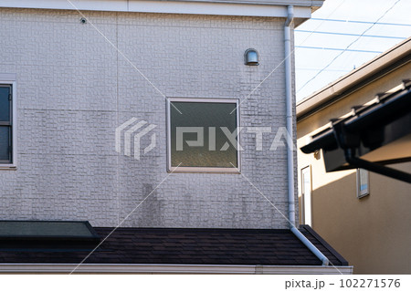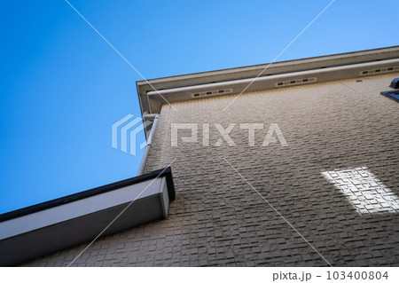 アイソメトリックな修繕のため足場に囲われた一戸建て住宅