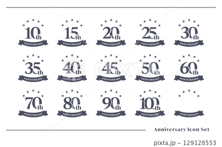 数字入り周年記念用アニバーサリーアイコンセット(10周年〜100周年)ベクター