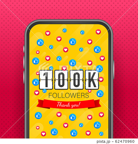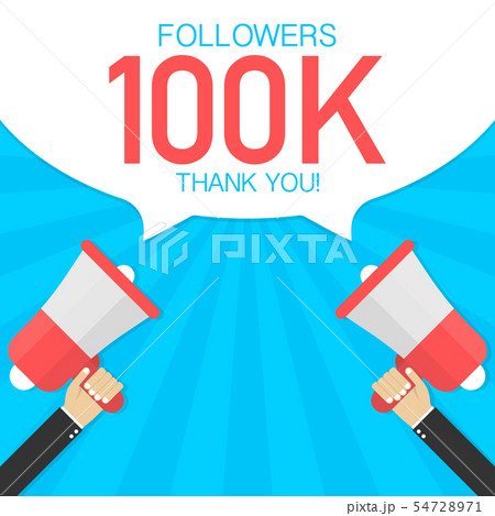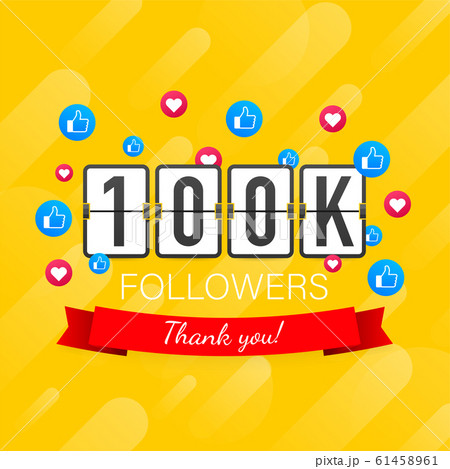 100000 followers vector. Greeting social card thank you followers. Congratulations 100k follower