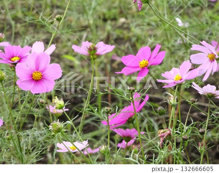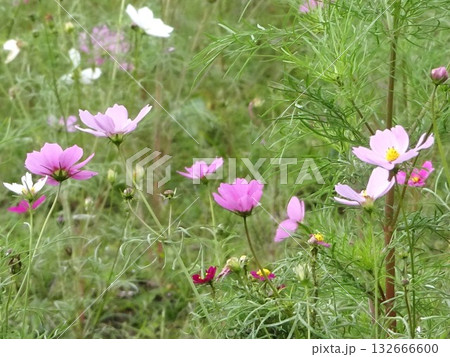水彩で描いたピンクのコスモスが綺麗なフラワーフレーム