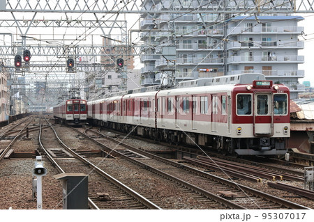 鶴橋駅に入線する近鉄2400系電車と1220系電車