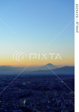 ランドマークタワーからの横浜の夕景 富士山と街のシルエット