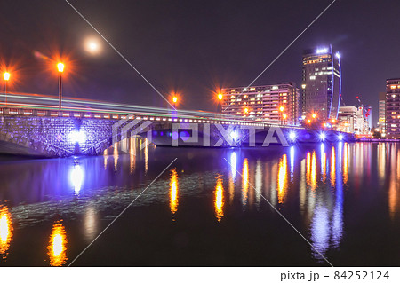 ブルーライトアップの萬代橋 (世界糖尿病デー)