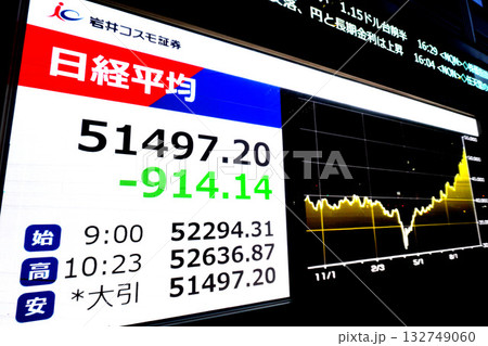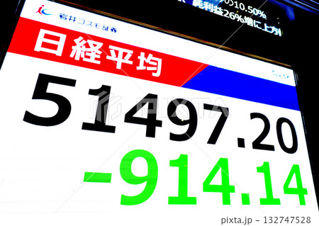 日本の東京都市景観大幅反落914円14銭安の5万1497円20銭とこの日の安値で終えた=4日