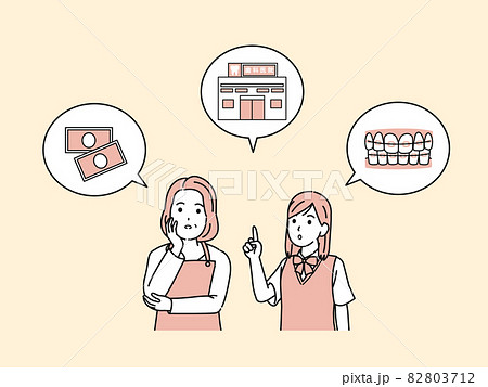 娘の歯科矯正を考える母親 歯列矯正 歯医者 歯並び 学生 中高生 イラスト素材