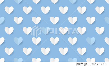 白と青の紙のハートが青い背景に並ぶシームレスな背景素材